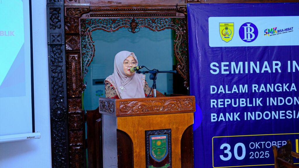 Kepala SMK Muhammadiyah 3 Purbalingga, apt. Nur Fitri Widiyanti, S.Si. dalam sambutannya menekankan pentingnya edukasi finansial sejak usia sekolah.